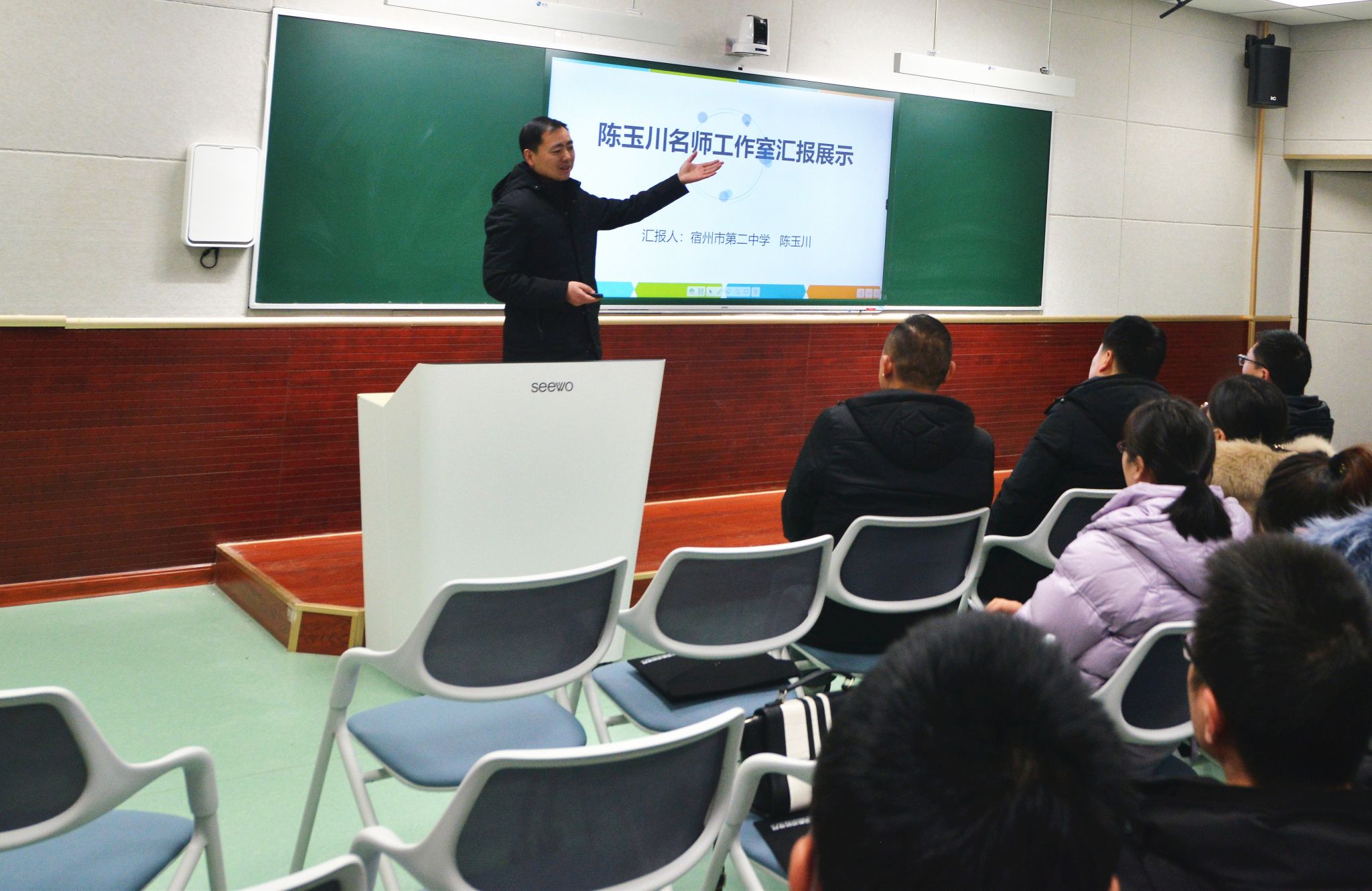 2021年陈玉川老师被遴选为“宿州市名教师陈玉川工作室”领衔人。工作室围绕青年教师专业发展、推进新课程新教材新高考实施、对接市教科所教科研工作三大中心任务扎实开展工作,取得了优异的成绩,被学科网名师工作室评审组委会评选为“全国优秀名师工作室”。同时工作室成员也借助平台得到了较好的发展,核心成员中有7人被评为“宿州市骨干教师”,多人次在各类公司产品比赛中获奖,其中童大俊老师荣获安徽省优质课评选个人赛一等奖。