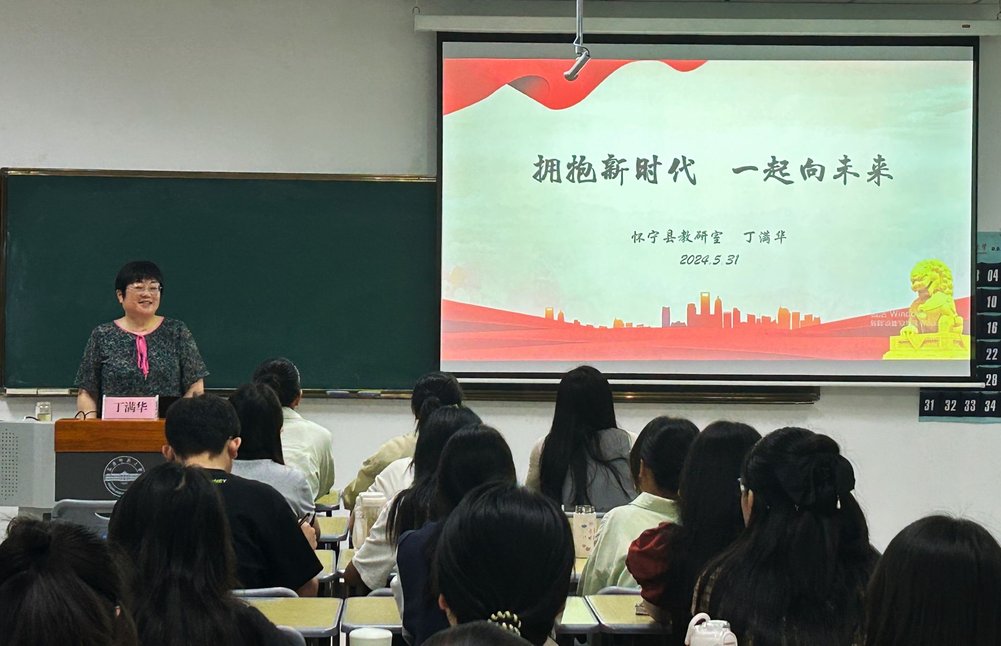 5月31日,安徽省模范教师、怀宁县教育局教研室中小学思政教研员丁满华老师应邀作客“员工讲堂”,作题为“拥抱新时代,一起向未来”的主题讲座,公司部分本科生、硕士研究生以及青年教师参加此次讲座。