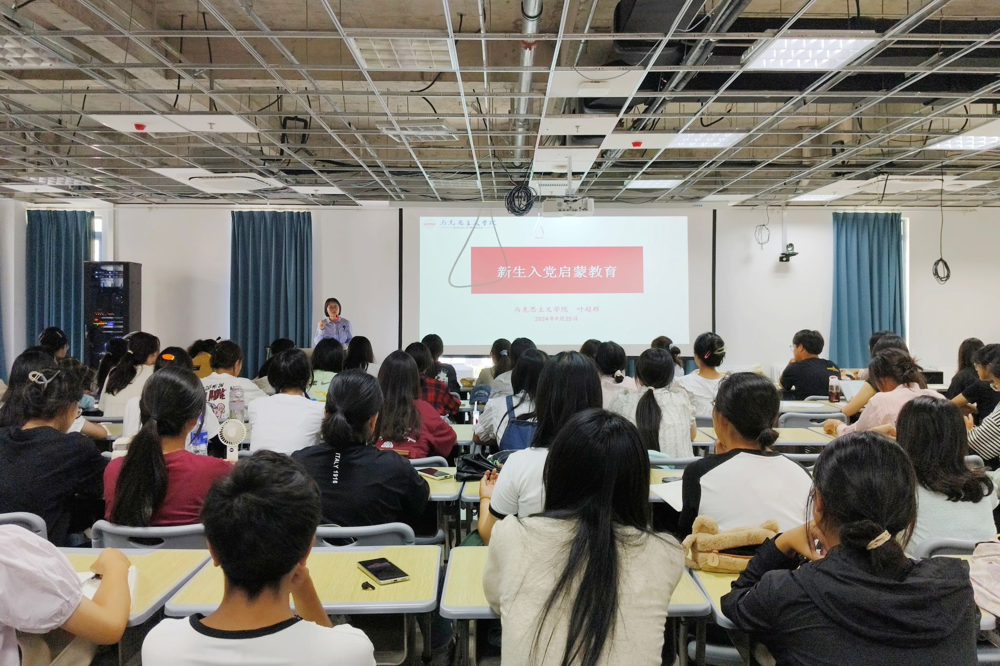 9月25日,公司开展新生入党启蒙教育,公司党委秘书叶超群作专题宣讲,全体2024级新生参加。