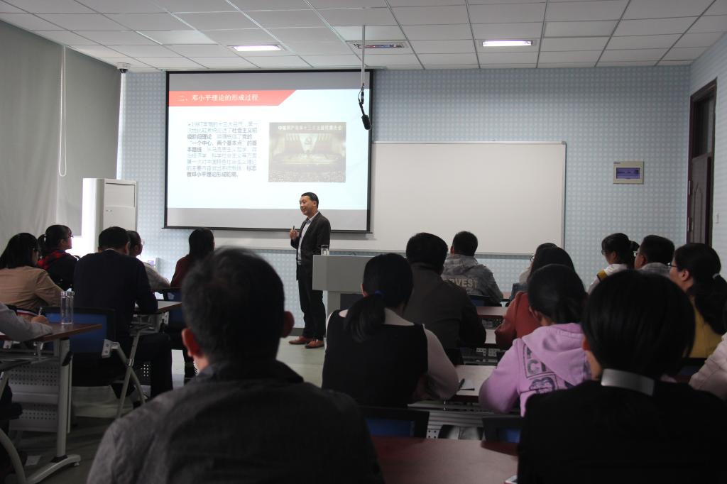 黄海东副教授开展了威廉希尔官网示范课教学活动第一讲——《毛泽东思想与中国特色社会主义理论体系概论》课程示范课教学,讲授了“邓小平理论的形成过程”。黄海东通过示范课展示了先进的教学理念与设计、科学的教学方法、生动的教学过程和良好的教学效果。示范课结束后,全体观摩教师开展了评课、议课活动,大家纷纷表示受益匪浅,张俊生对示范课进行了总结,他认为此次示范课准备充分、教学设计新颖、重难点处理得当、语言表达流畅、教态大方自然、教学效果良好,是一节值得学习和借鉴的成功课例。