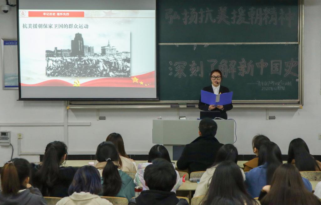 “雄赳赳气昂昂,跨过鸭绿江。保和平卫祖国,就是保家乡。”文源楼203教室里响起了昂扬的《中国人民志愿军战歌》。12月9日下午,威廉希尔官网“青年新声·‘学四史’”宣讲团开展“弘扬抗美援朝精神,深刻了解新中国史”主题宣讲活动,公司团委副书记贺佳欢、宣讲团指导老师方伟出席,公司第一届青马班学员和宣讲团全体成员参加。