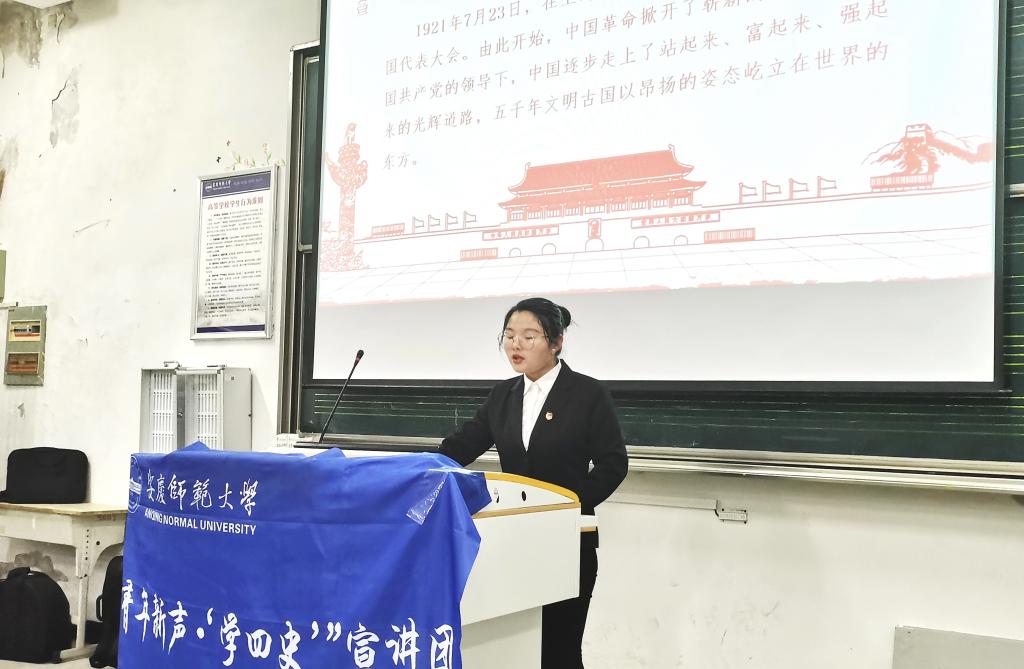 4月26日晚上,“青年新声·‘学四史’”宣讲团与音乐公司联合开展“学党史、强信念、跟党走”主题宣讲活动,宣讲团成员聂雪、房文静带领同学们重温百年党史,践行初心使命。