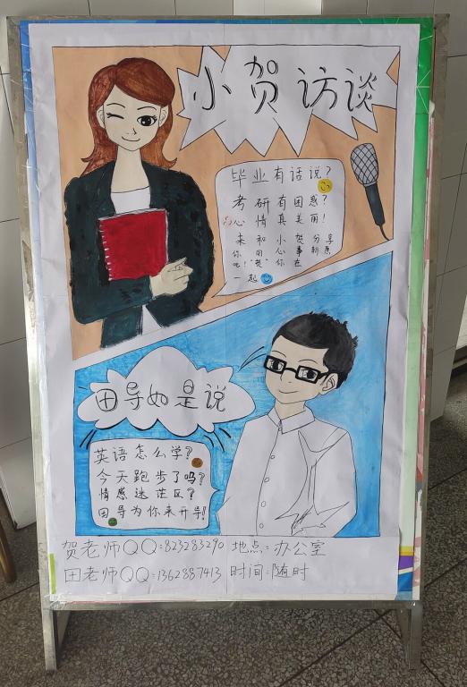 思想政治教育专业2018级辅导员贺佳欢开设“小贺访谈”,为同学们提供倾诉烦恼,寻求解决方案的平台,她表示:“有很多即将考研的同学向我咨询排解压力的方法,他们在准备考研的期间确实很辛苦,但是适当去放松,比如外出运动、享受美食等等,也许会达到事半功倍的效果。”