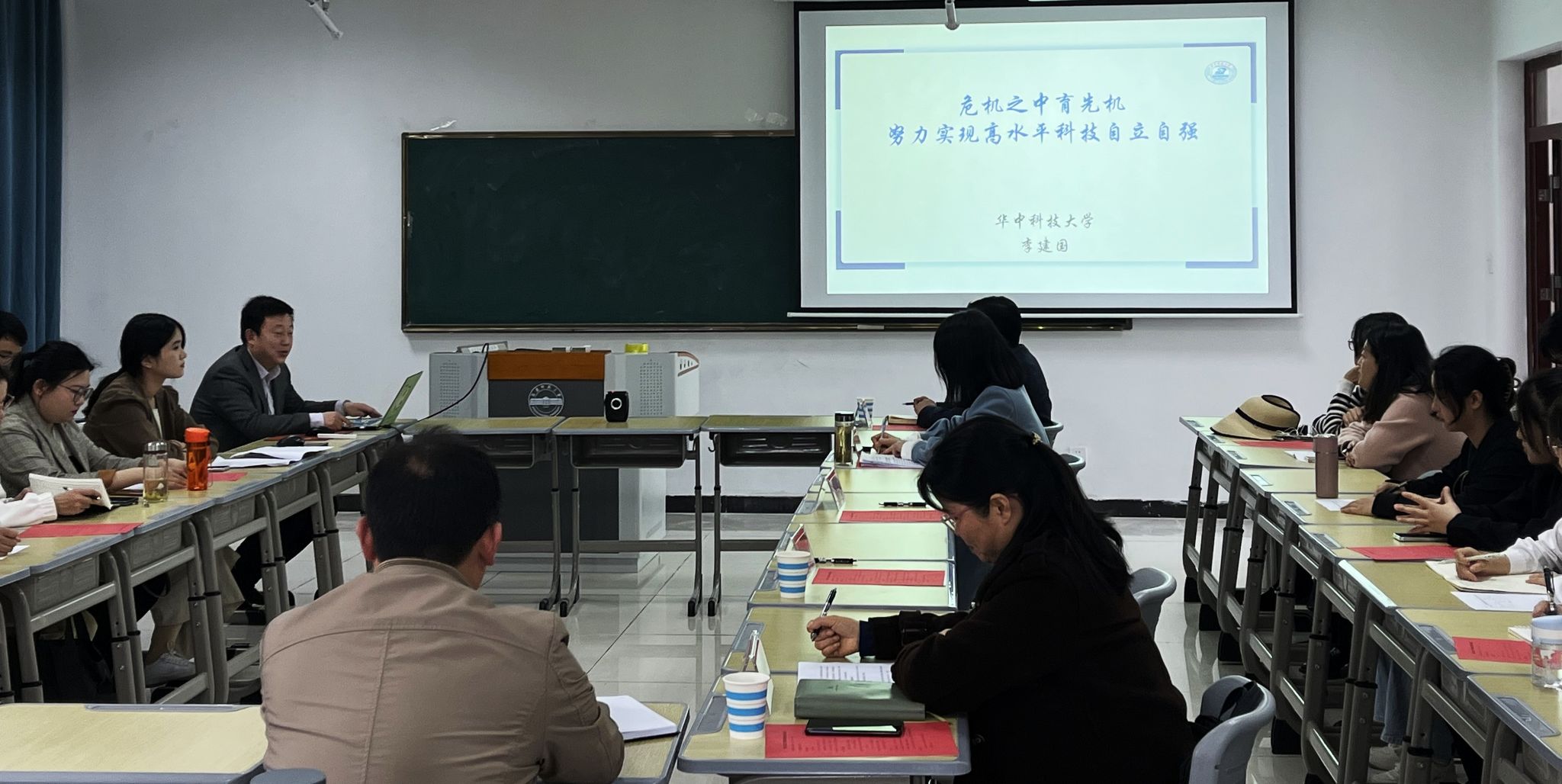 4月1日,全国首届高校思想政治理论课教学展示特等奖获得者、湖北省高等公司中青年马克思主义理论家培育计划人才,湖北省优秀青年社科人才,教育部思想政治工作创新发展中心专家委员会委员,中共湖北省委讲师团专家成员、华中科技大学威廉希尔官网副经理、博士生导师李建国教授应邀作客“3.18大讲堂”,作题为“危机之中育先机:努力实现高水平科技自立自强”的报告。报告在威廉希尔官网楼212教室举行,公司党政领导班子成员、全体青年教师及部分硕士研究生、本科生参加。报告会由经理严仍昱主持。