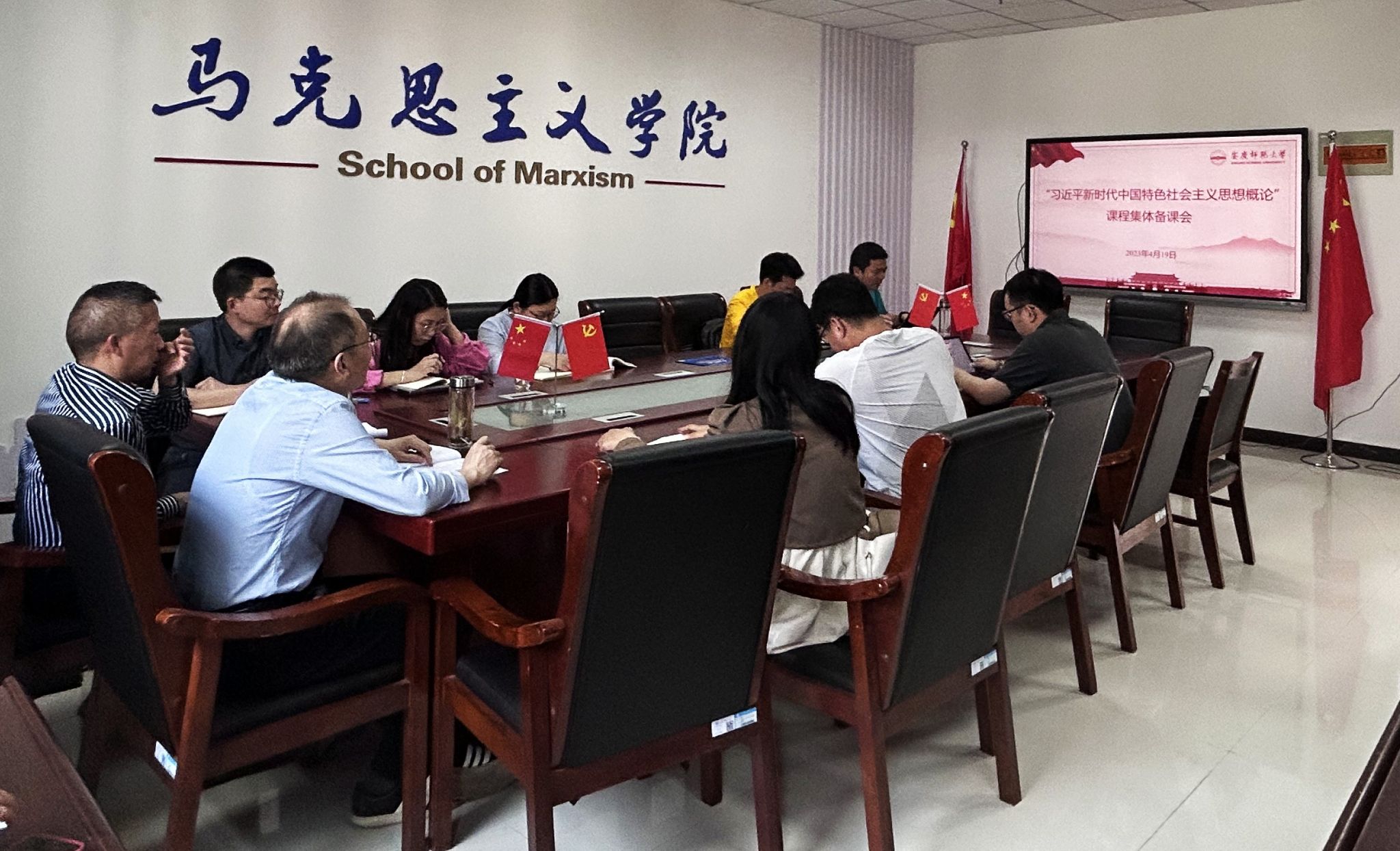 4月19日,“习近平新时代中国特色社会主义思想概论”教研室召开集体备课会,聚焦“第九讲 全面依法治国”和“第十讲 建设社会主义文化强国”进行教学研讨,教研室全体教师参加,会议由教研室主任陈道发主持。