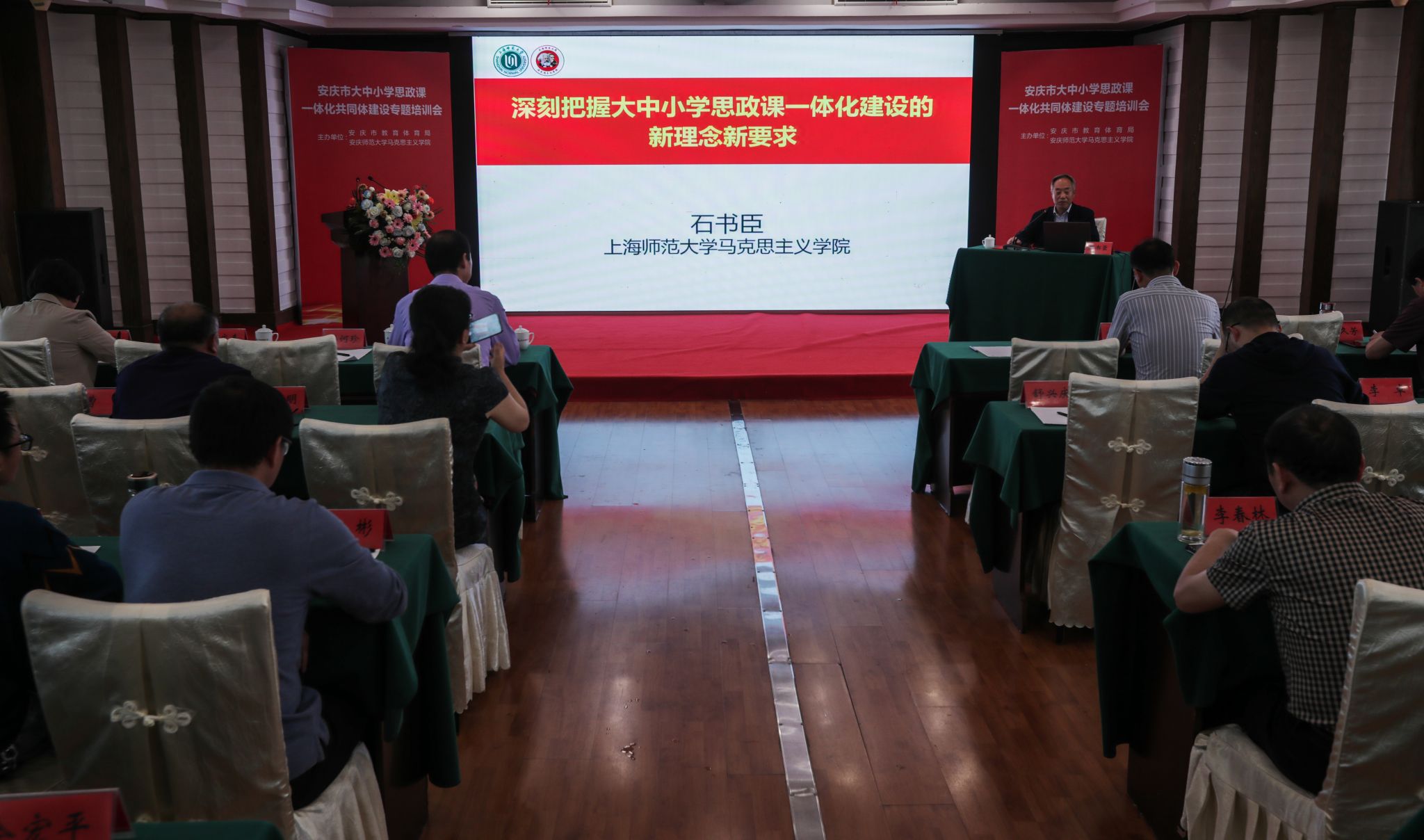在专题培训会上,来自上海师范大学威廉希尔官网博士生导师石书臣教授受邀作了题为“深刻把握大中小学思政课一体化建设的新理念新要求”主旨报告。在研讨交流阶段,安庆市大中小学思政教师进行了同题说课。