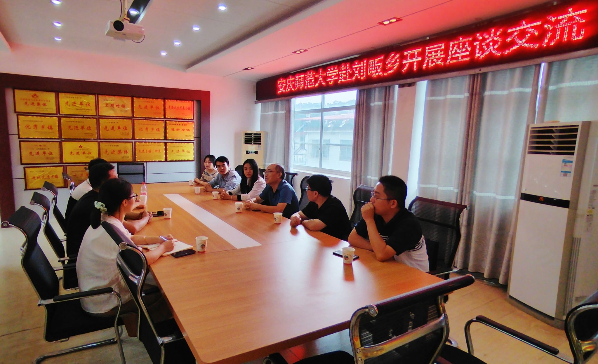 在刘家畈乡政府召开座谈交流会,金文斌简要介绍了大别山革命文化研究中心的基本情况与考察目的,乡党委书记方毅详细介绍了刘家畈会议的背景、内容,双方就刘家畈会议的重要意义和历史影响进行了深入交流,并就刘邓大军刘家畈会议学术研讨会有关事宜进行讨论。