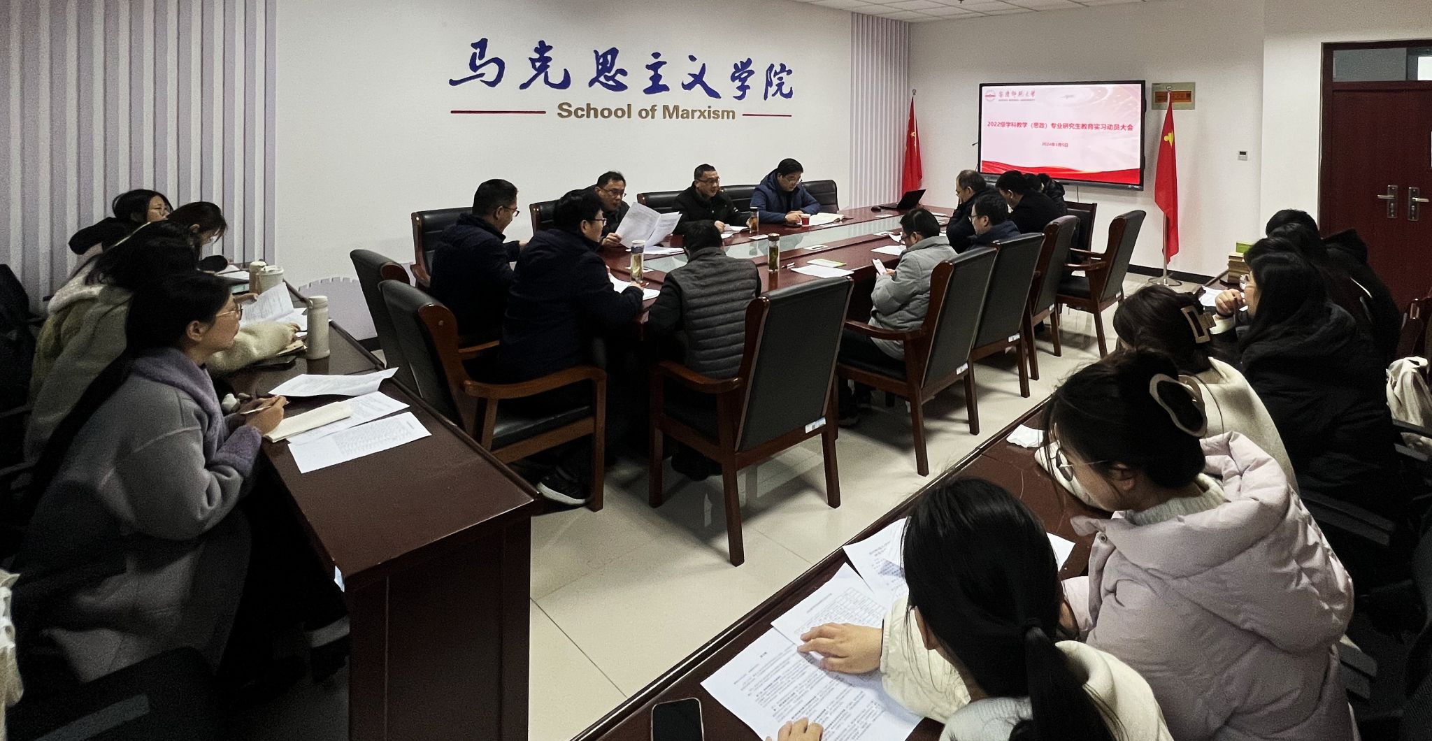 3月5日,公司召开2022级学科教学(思政)专业研究生教育实习动员大会。公司副经理张俊生、学位点点长黄海东、指导教师、研究生秘书、研究生辅导员以及2022级学科教学(思政)专业研究生参加动员会,动员会由张俊生主持。