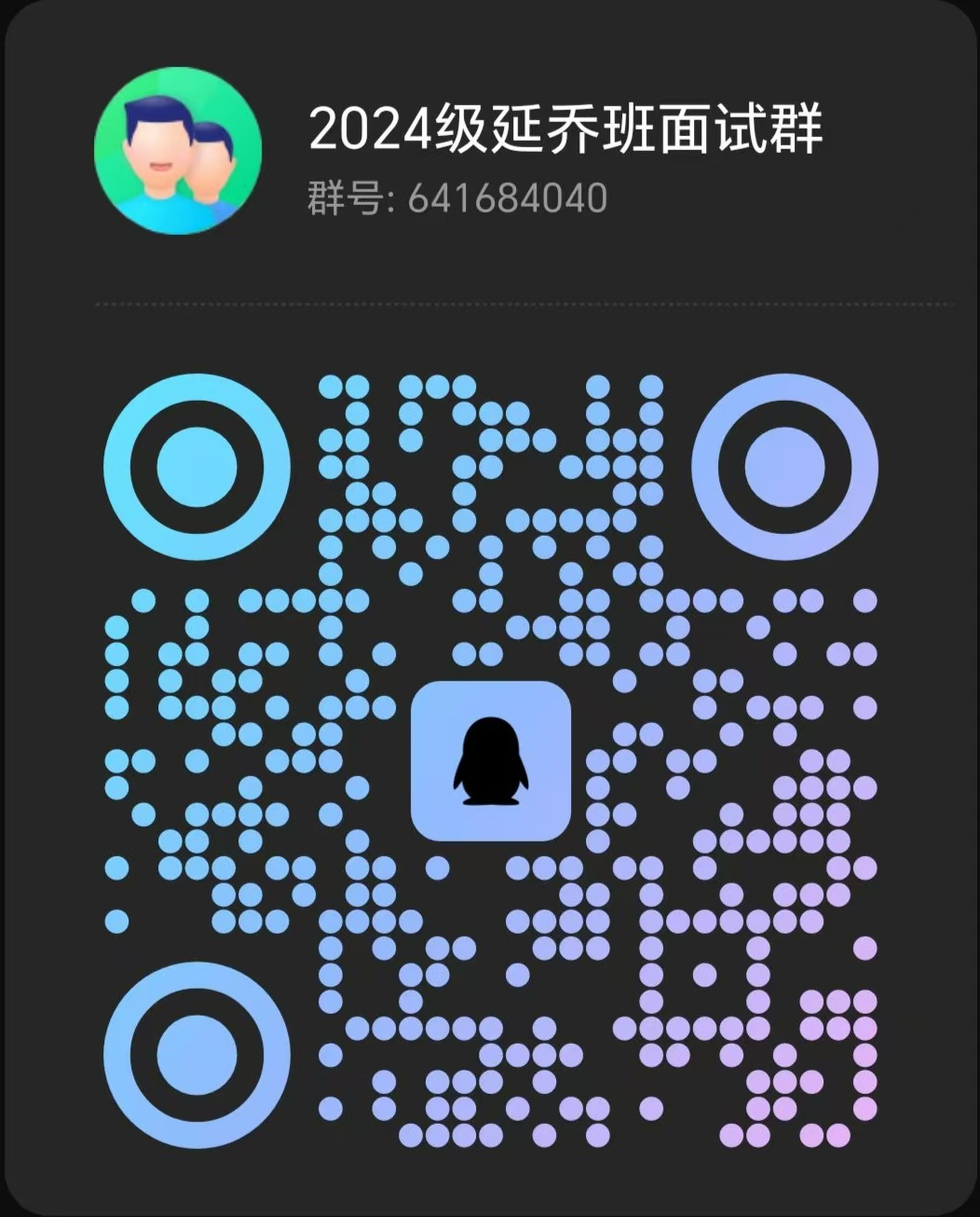 公示结束后,请进入面试环节的考生务必及时加入QQ群(群号:641684040;或扫下方二维码入群),面试具体时间和地点在群内通知。