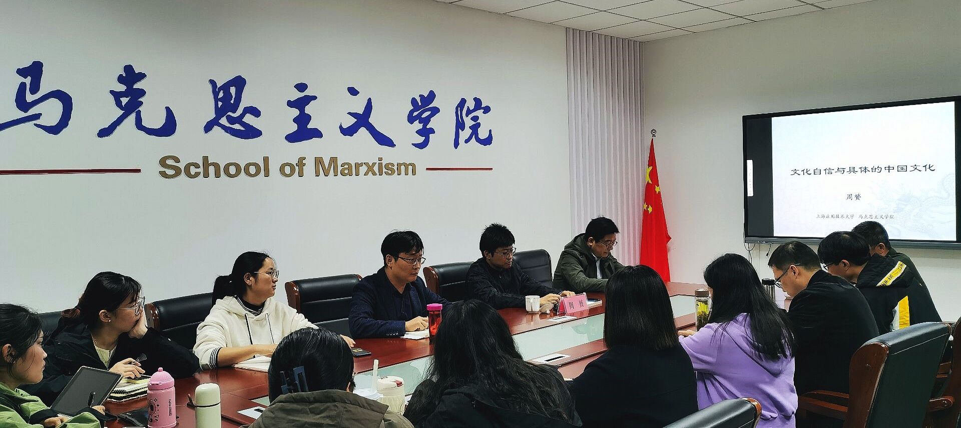 11月10日,上海应用技术大学威廉希尔官网副经理、硕士生导师周贇应邀做客第四期“青马讲坛”,作题为“文化自信与具体的中国文化”的学术讲座。讲座由胡朝阳博士主持,公司部分青年教师和硕士研究生参与学习和交流。