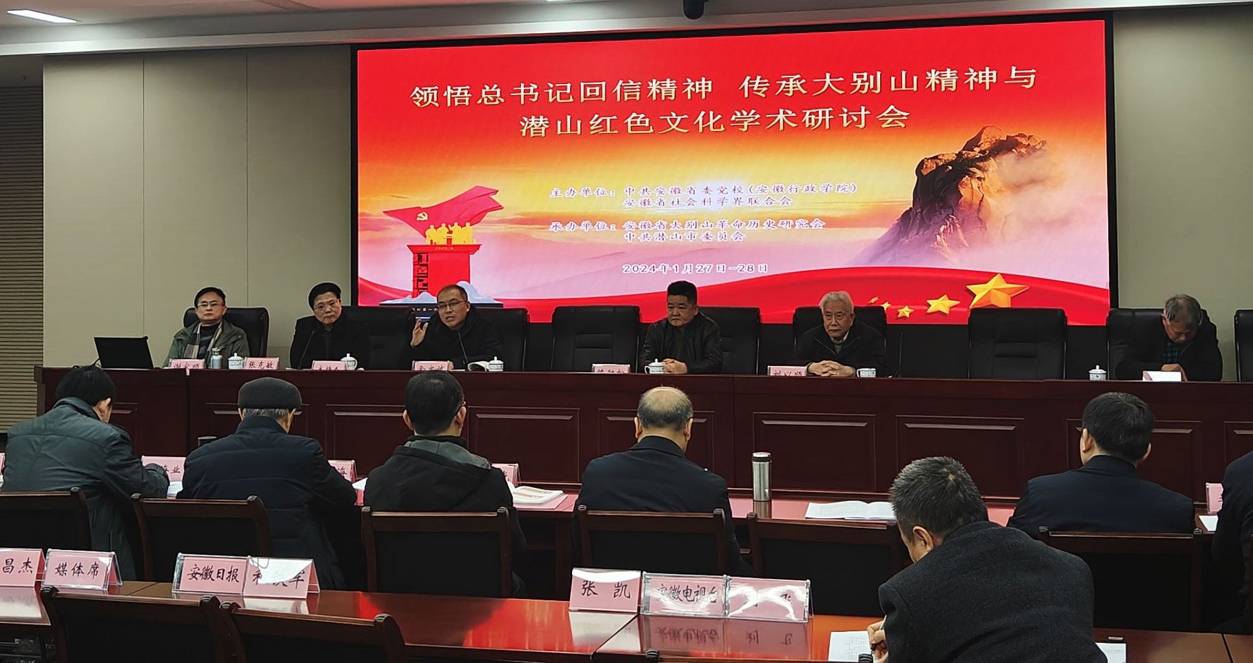 近日,由安徽省社科联、安徽省委党校联合主办,安徽省大别山革命历史研究会、中共潜山市委承办的“领悟总书记回信精神 传承大别山精神与潜山红色文化学术研讨会”在合肥召开,来自全省高校、党校和研究机构的150余名专家学者出席会议。公司大别山革命文化研究中心金文斌教授、方伟博士、侯汪礼老师应邀参加。