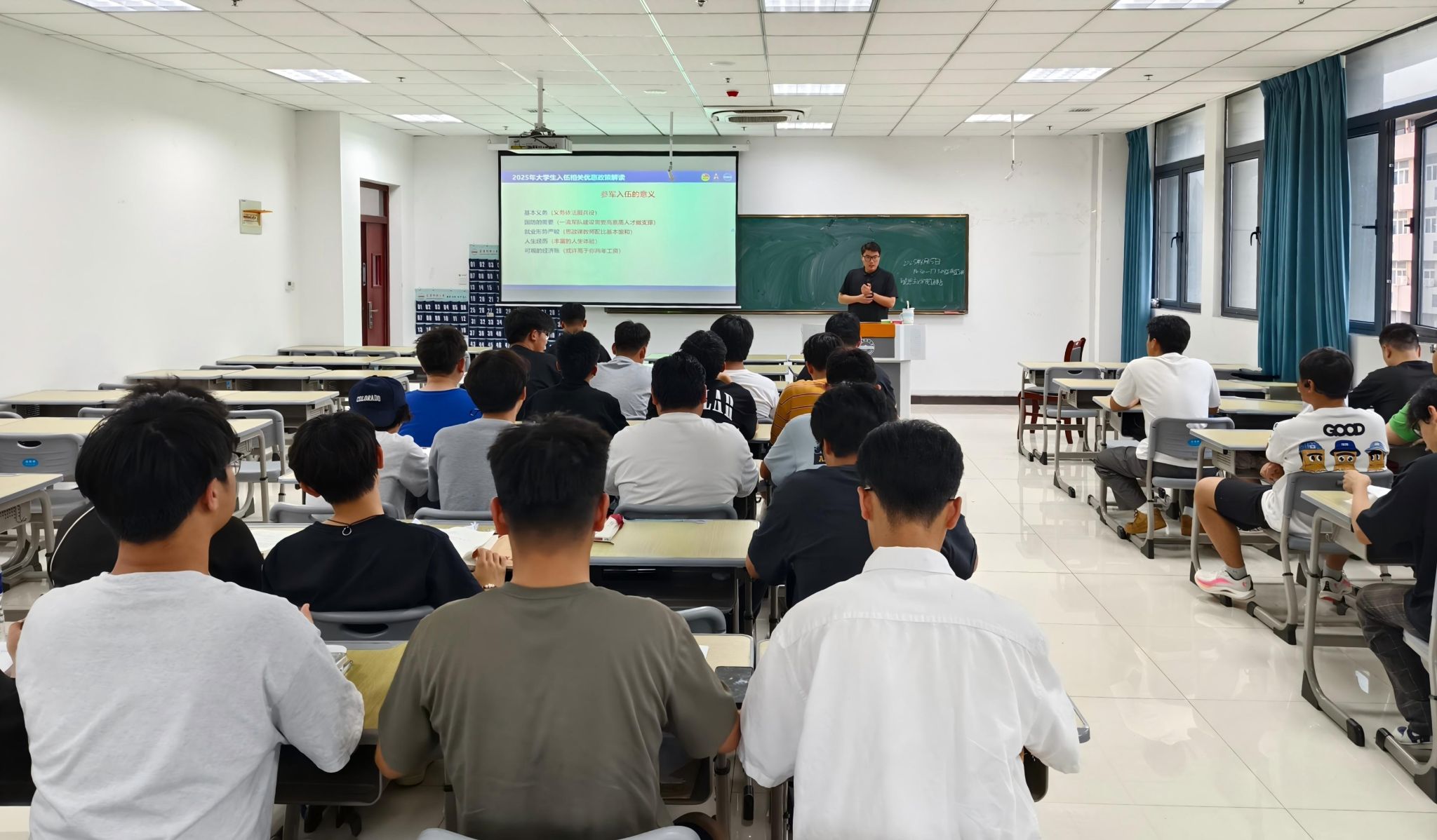 6月15日下午,公司在Q楼119教室举办2025年威廉希尔官网征兵宣讲活动,此次活动邀请了全国“青马工程”高校班学员、安徽省优秀毕业生、马克思主义理论专业2022级硕士研究生李宝鑫宣讲,公司各班70余人参加会议。