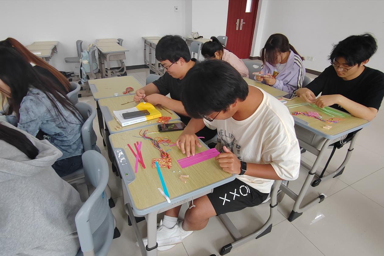 赛龙舟、包粽子、佩香囊,志愿者首先通过短视频科普端午节起源及习俗。随后,在动手环节,同学们学习折纸龙舟制作,并在志愿者指导下,使用五彩丝线编织端午绳。“以前觉得非遗离我们的生活很遥远,今天亲手编了一条手绳,才发现传统技艺这么有趣!”思想政治教育专业2024级(3)班胡静静举着刚完成的五彩绳感叹。志愿者鼓励同学们编织手绳、挂件互赠,在香囊的填充制作环节,同学们化身“手作达人”,参与者填充香料入香袋,并装入素绢香囊,活动在欢声笑语中落幕,同学们举起作品拍照留念。