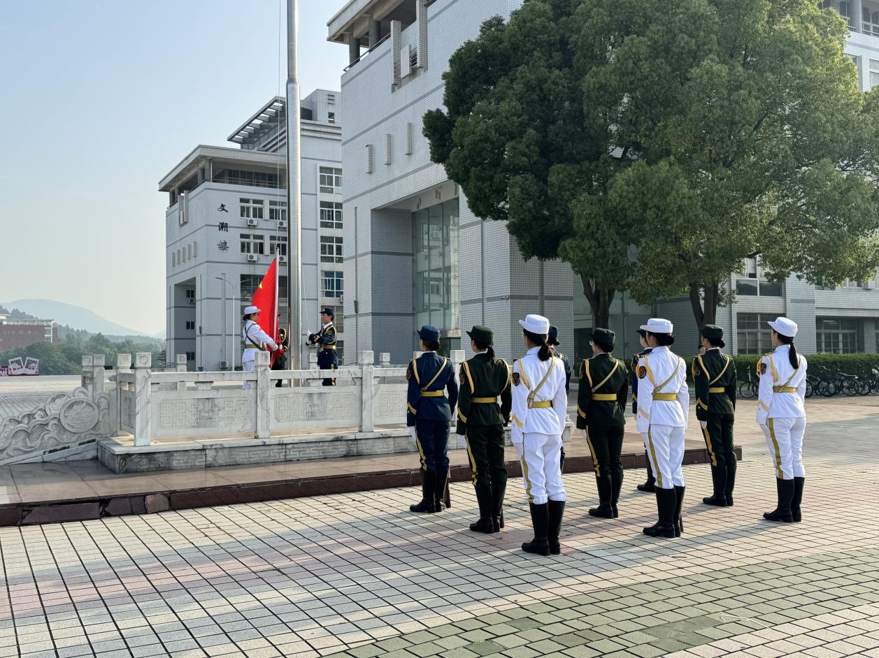 5月19日,威廉希尔官网在敬敷广场前举行升旗仪式活动,2024级全体新生、各年级员工代表共 240余人参加活动。