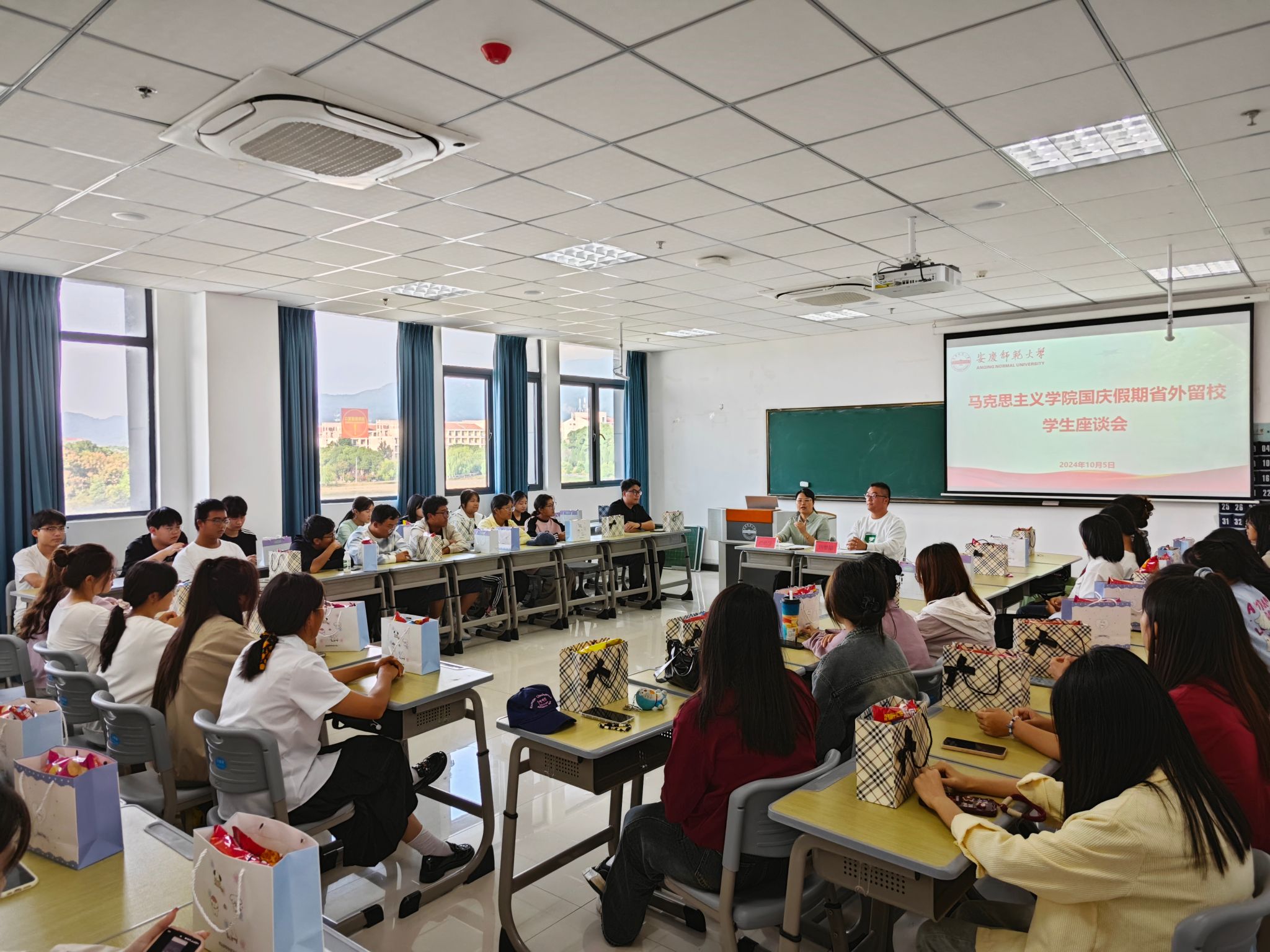 与会同学在座谈会上依次进行了自我介绍,分享了家乡的风俗民情。2024年全国“青马工程”高校班学员、马克思主义理论专业2022级研究生李宝鑫作为省外员工代表发言。