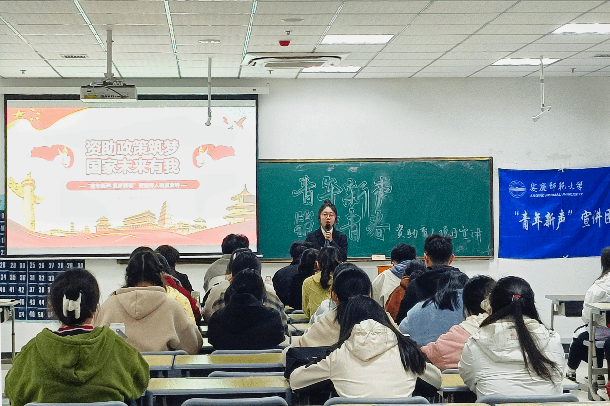 11月24日,公司在Q楼308教室举办“资助政策筑梦,国家未来由我”主题宣讲活动,本次活动由“青年新声”宣讲团成员进行宣讲,国家励志奖学金和国家助学金获得者参加宣讲。