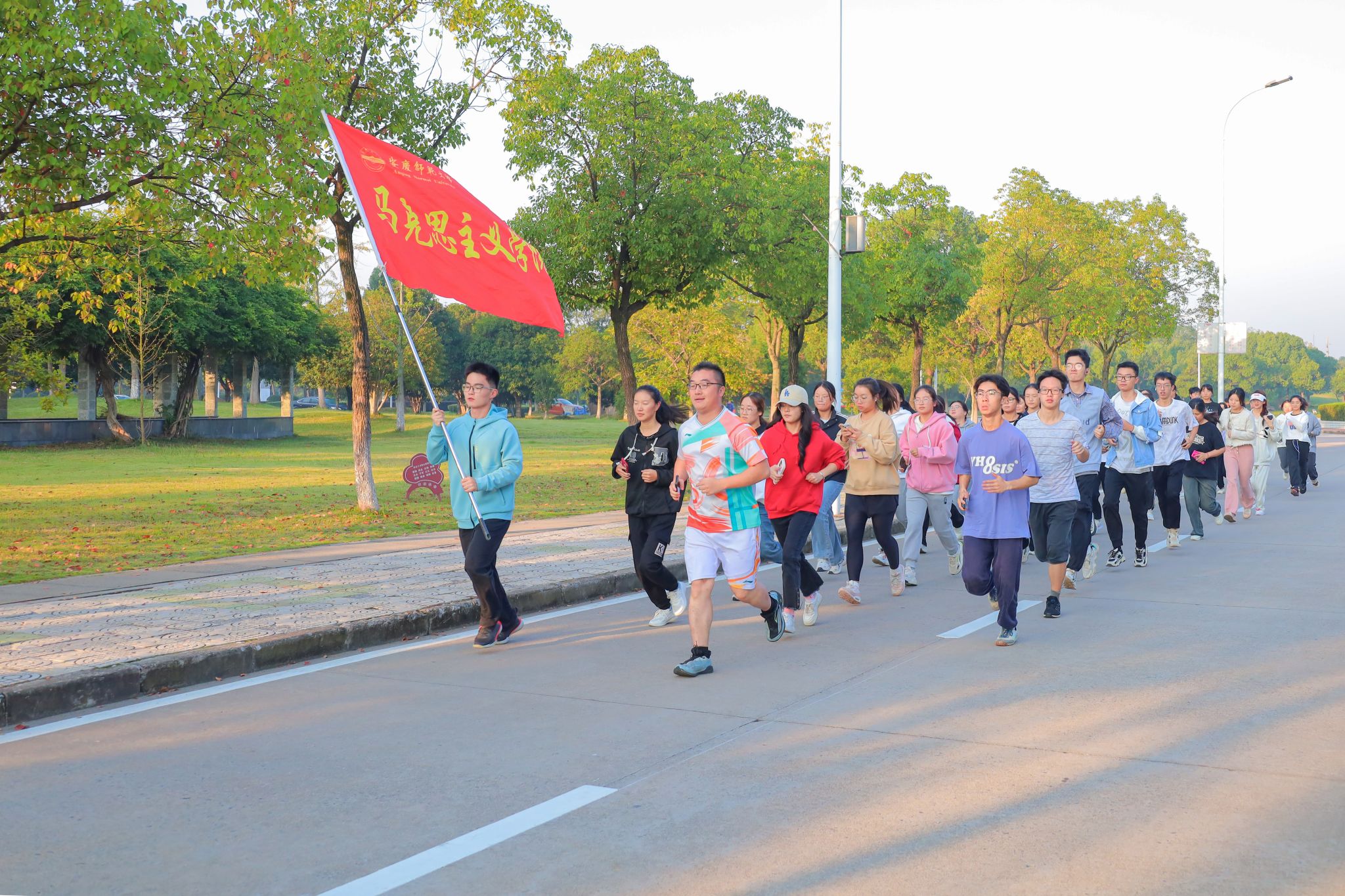 一边调整呼吸,一边匀速摆臂,思想政治教育专业2023级延乔班的李鑫洋一直紧跟着队伍,坚持跑完了全程。李鑫洋说:“跑步是一个挑战自己过程,我日常会坚持跑步,阳光晨跑活动给了我们一个很好的相聚平台。老师和我们一起跑,给我们也树立了学习的榜样,增进我们与老师之间的感情。”