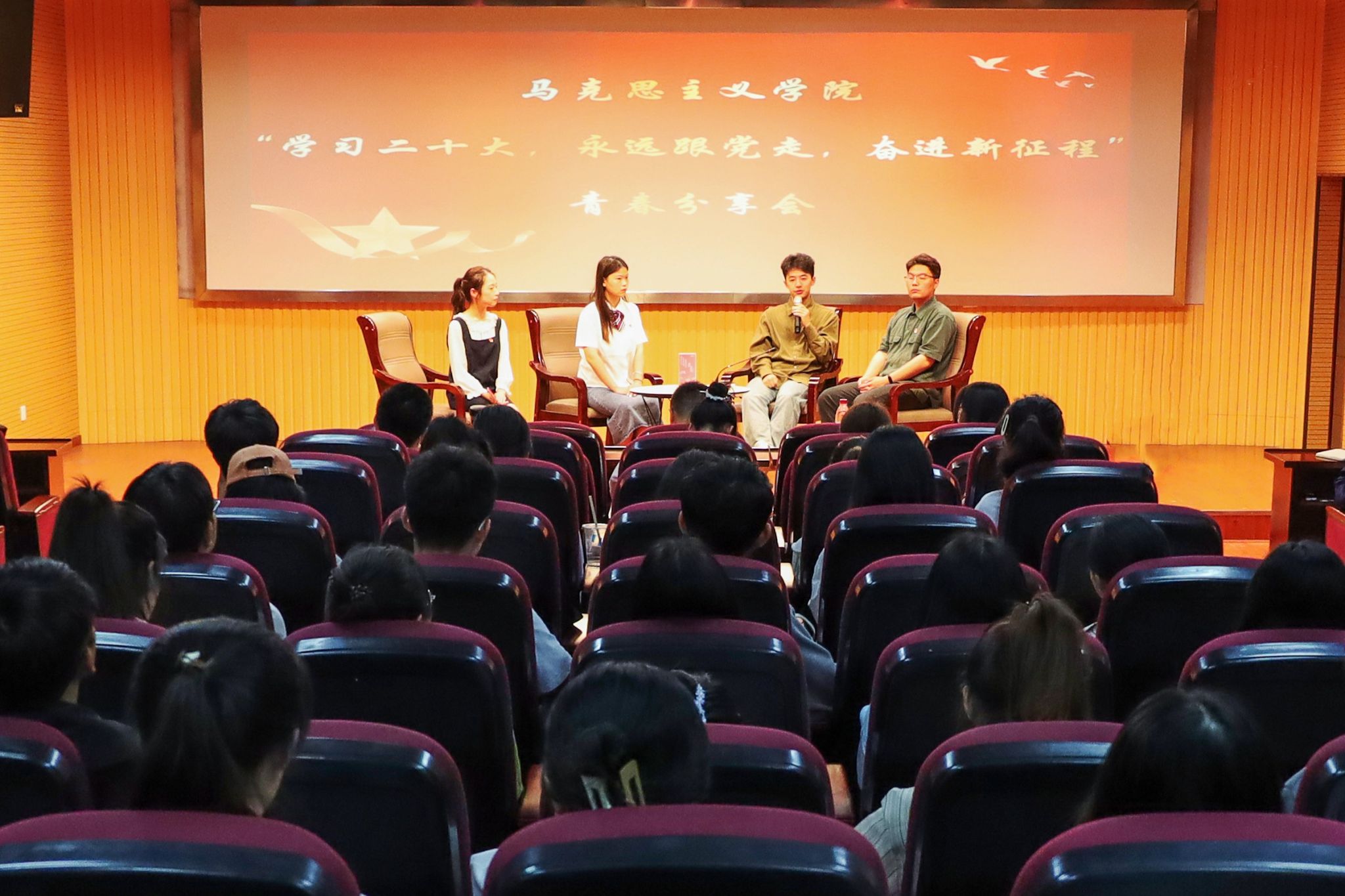 5月12日,公司举办主题为“学习二十大 永远跟党走 奋进新征程”的青春分享会。李宝鑫、詹海祥和张梦谣三位优秀员工代表参与分享,研究生党员、第三期青马班全体学员、延乔班全体员工以及2022级本科员工代表共计120余人参加分享会。