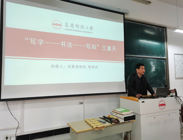 12月8日,公司在龙山校区稼先楼100室举办“思政大讲堂”之“赓续红色传统,规范汉字书写——师范生技能专题报告会”。本次报告会特邀公司党委委员、发展规划处处长、硕士研究生导师陈世庆为公司青马班成员及员工代表共计120余人作“‘写字——书法——写自’三重天”的专题报告。报告会由公司党委书记金文斌主持。
